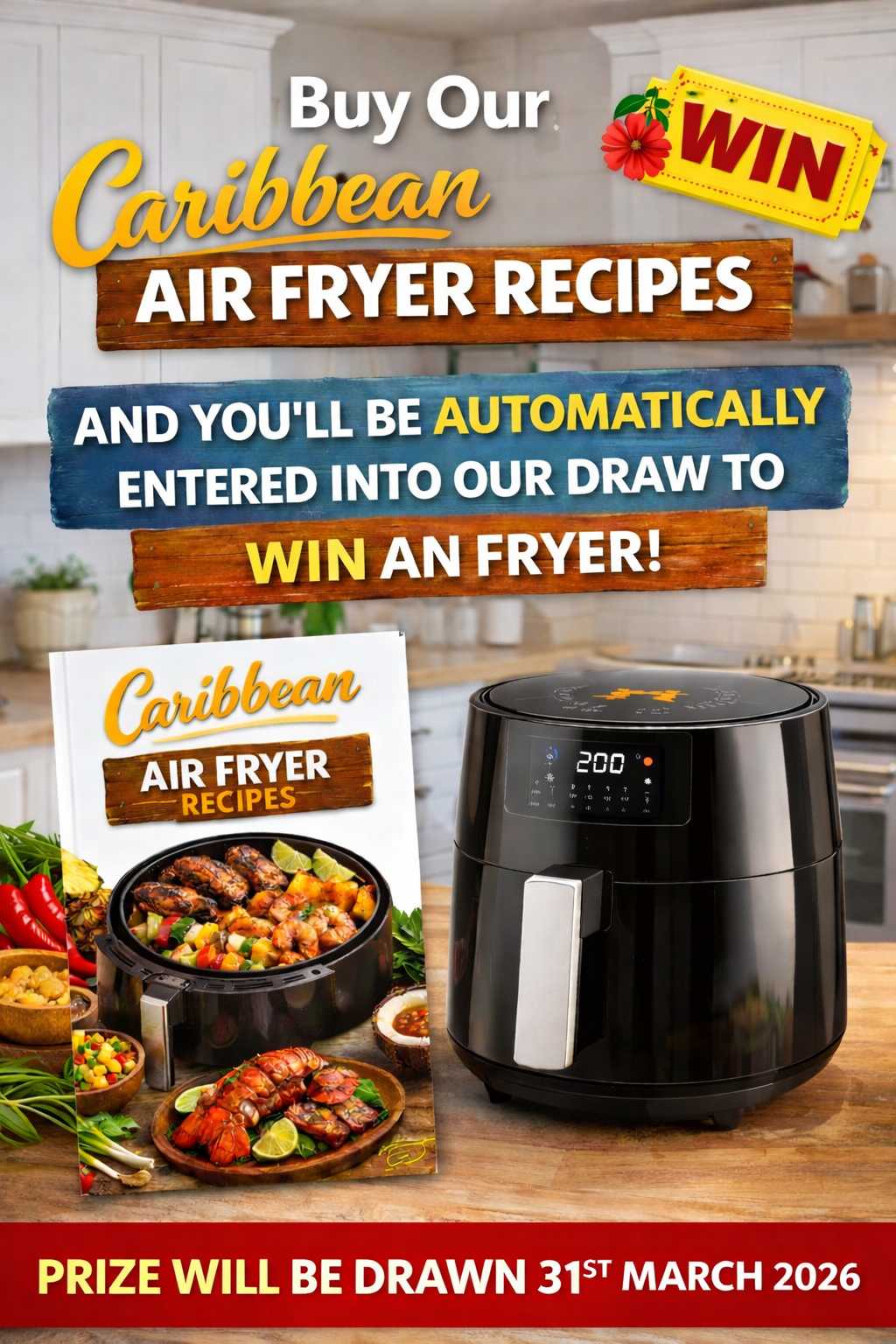 Buy our Caribbean Air Fryer eBook and get automatically entered to win a brand new air fryer. Prize drawn 31st March 2026